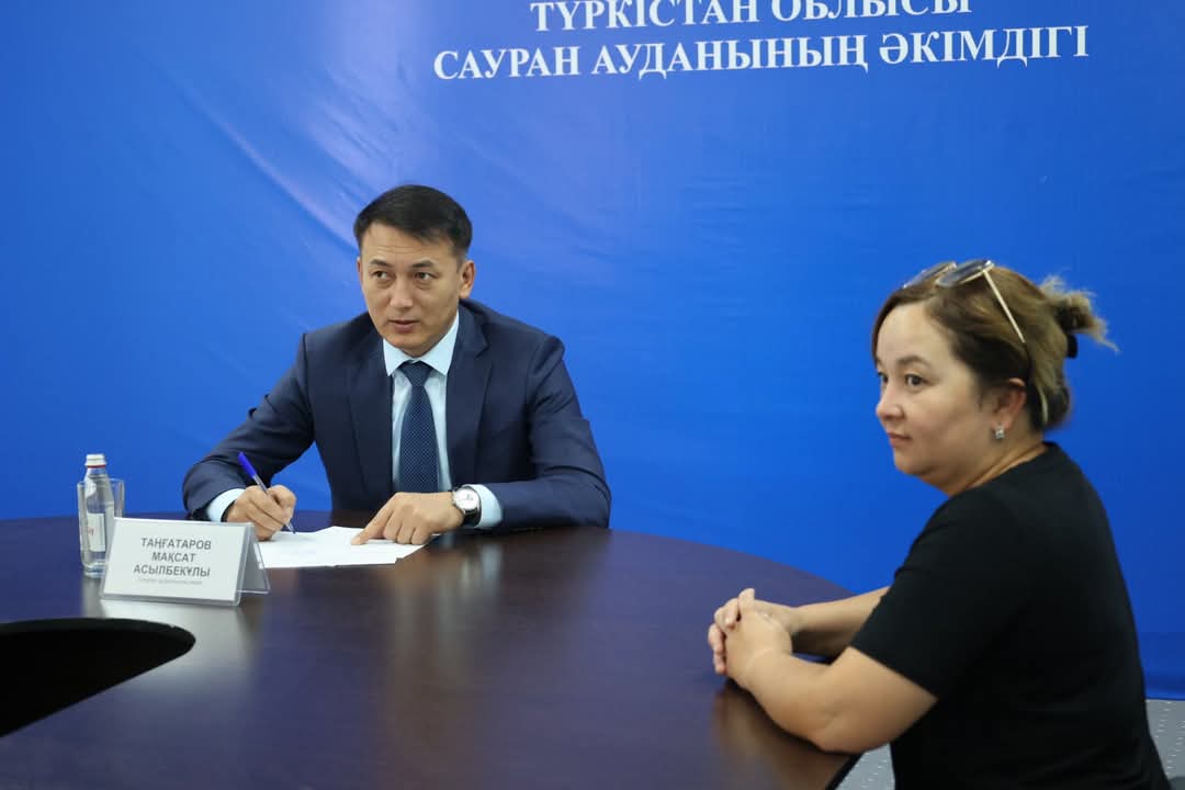 Бүгін Сауран ауданының әкімі Мақсат Таңғатаров азаматтарды жеке қабылдап, тұрғындардың әлеуметтік-тұрмыстық мәселелерін тыңдады. Қабылдау барысында 6 азамат 7 түрлі мәселе көтеріп, әрқайсысына нақты жауаптар мен шешу жолдары ұсынылды.