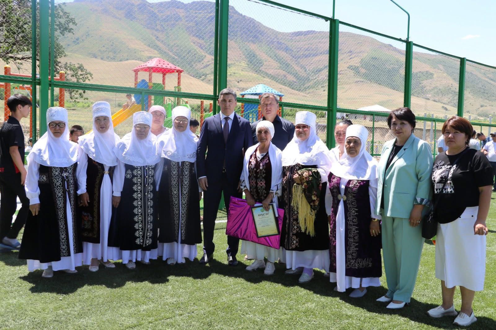Алаңшадан кіші футбол алаңы, жаттығу құралдары, әткеншек пен сырғанақтар орын алған. Барлығы да қауіпсіздік талаптарына сай жасалғаны айтылды. Аудан әкімі Асқар Естібаев пен мәслихат төрағасы Серғали Сәрсенбаев ашылу салтанатына қатысып, тұрғындарға игі тілектерін білдірді.